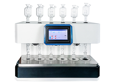 智能水浴冷凝回流提取仪可用于脂肪酸测定试样前处理中样品的水解、脂肪的皂化和甲酯化。可同时处理多个样品,解决了传统脂肪酸测定前处理的操作复杂、实验室凌乱的问题。适用于食品、粮油、奶粉等脂肪酸的测定。实验过程中,蒸发瓶内的样品将通过水浴锅加热蒸发,蒸汽进入蒸发瓶上方的冷凝回流器,其中冷凝管内通有低温循环液蒸汽遇到低温的冷凝管被液化重新回流入发瓶,如此反复回流。蒸馏过程中可蒸发回流阶段完成,可以把蒸发瓶取下放进冷水浴中,样品将被迅速冷却到室温。该产品适用于食品及食品包装物部分项目检测前处理,中药科研单位、环境检测、食品检测、生物浸出物等实验。可替代传统水浴锅回流实验,满足大样品量的需求。